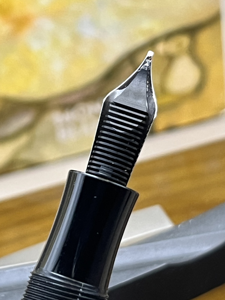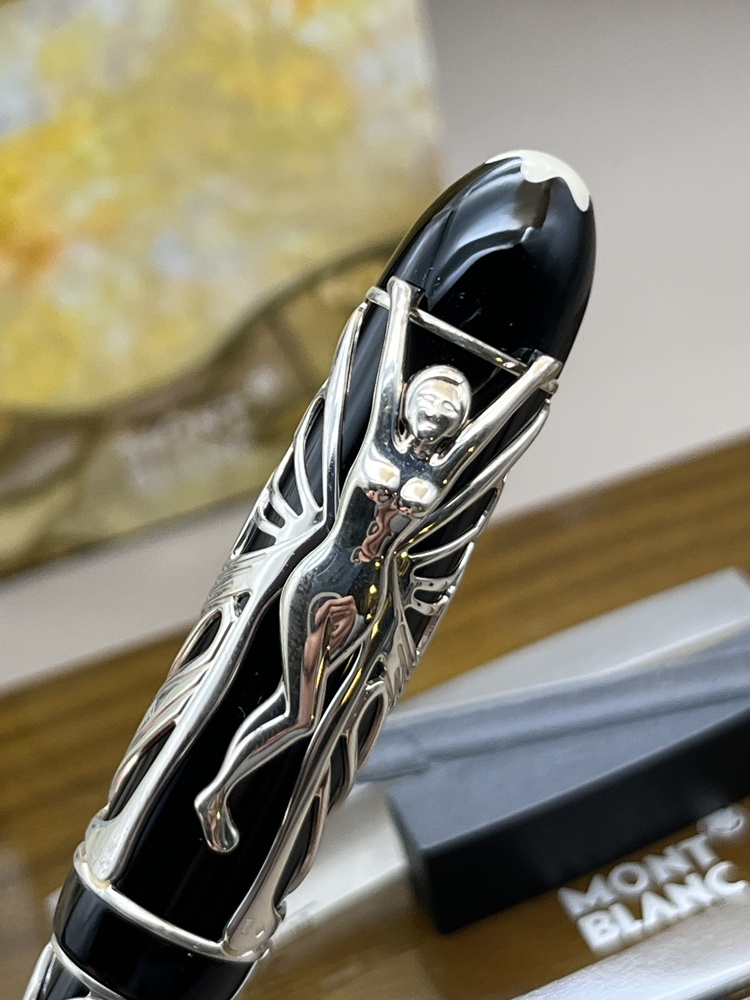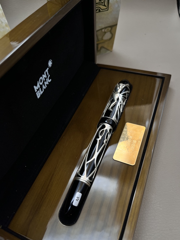 Korpus & Kappe: Edles schwarzes Edelharz mit reich verzierter Art-Nouveau-Verzierung aus platinbeschichtetem Metall