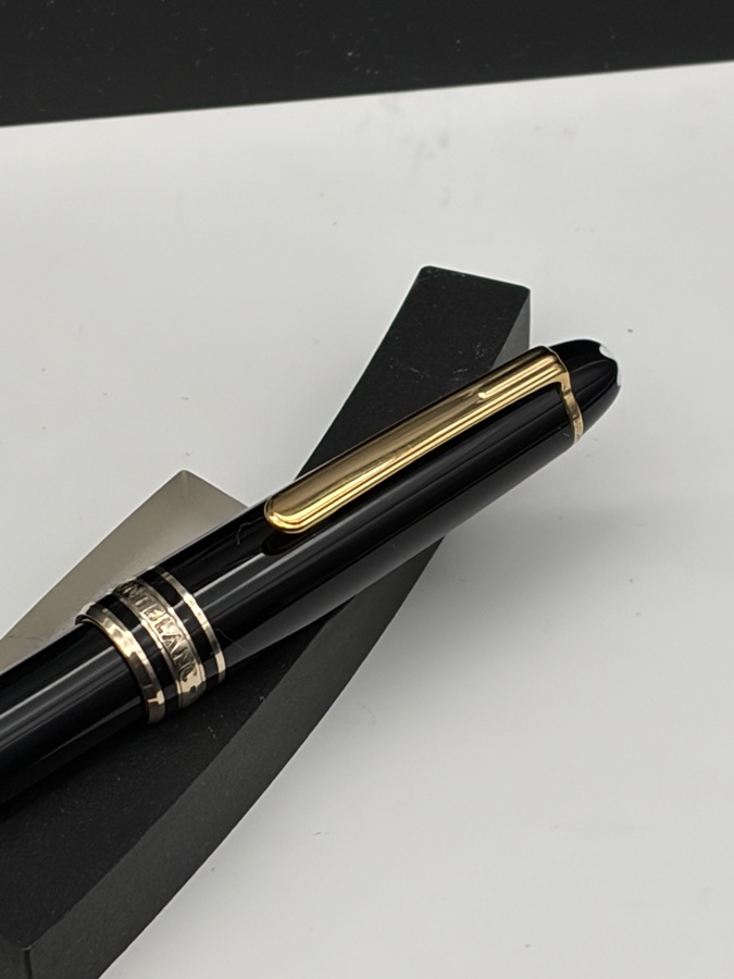 Der Körper besteht aus schwarz lackiertem Metall und die Kappe aus schwarzem Kunstharz – Die Beschläge und der Clip sind vergoldet