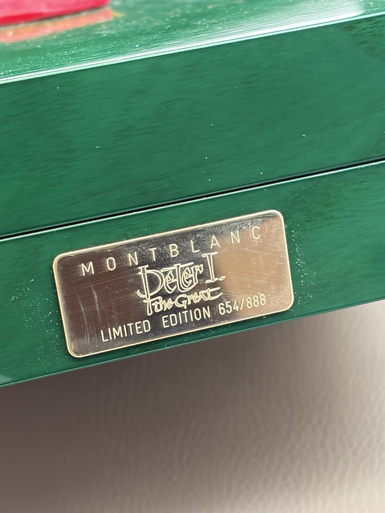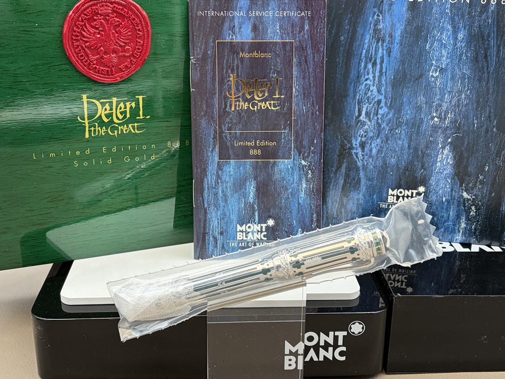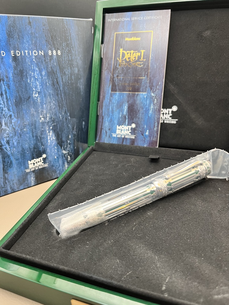 Zum Verkauf steht ein exklusiver Montblanc Füllfederhalter aus der limitierten Patron of Art Edition 888 – Peter der Große aus dem Jahr 1997. Diese Edition wurde zu Ehren des russischen Zaren Peter I. (auch bekannt als „Peter der Große“) geschaffen, der als moderner Reformer und Visionär in die Geschichte einging.