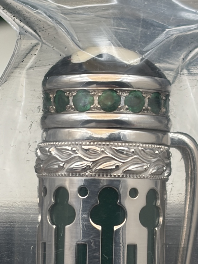 Kappenkopf mit Smaragden: Der Abschluss der Kappe ist mit Smaragden verziert – ein seltener, farbintensiver Akzent, der die imperiale Anmutung unterstreicht und als Blickpunkt des gesamten Designs fungiert.