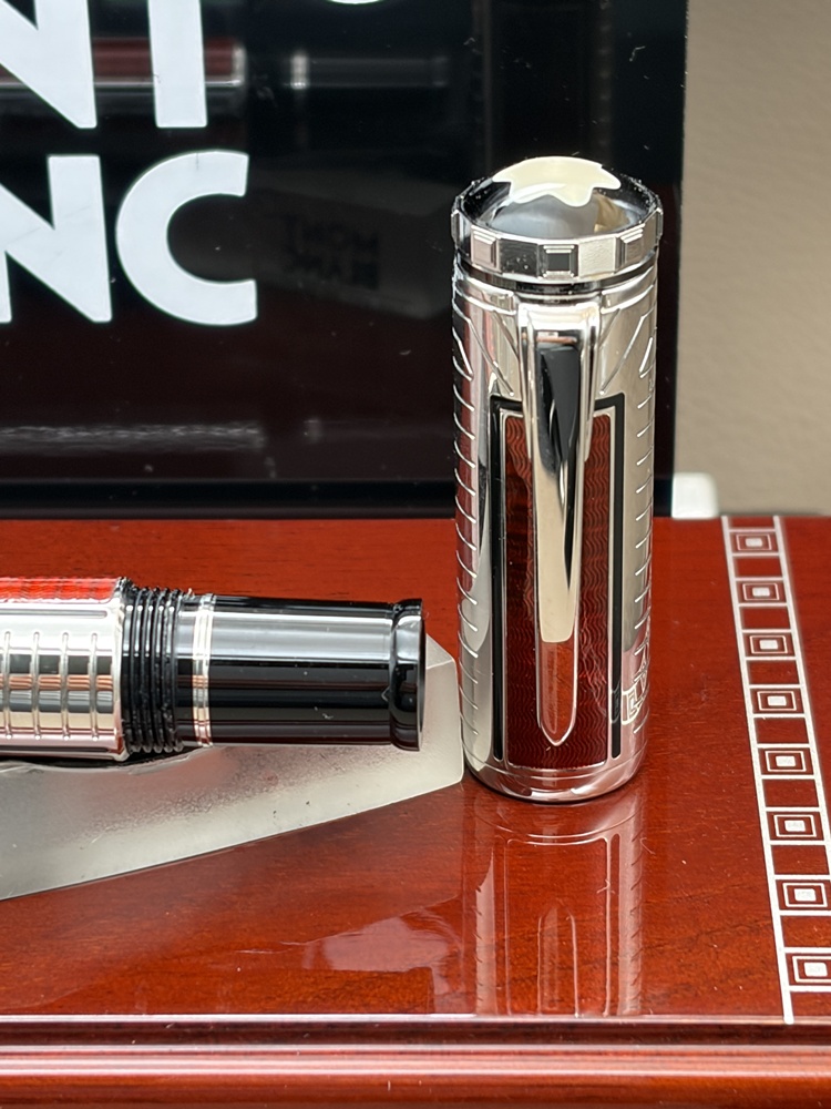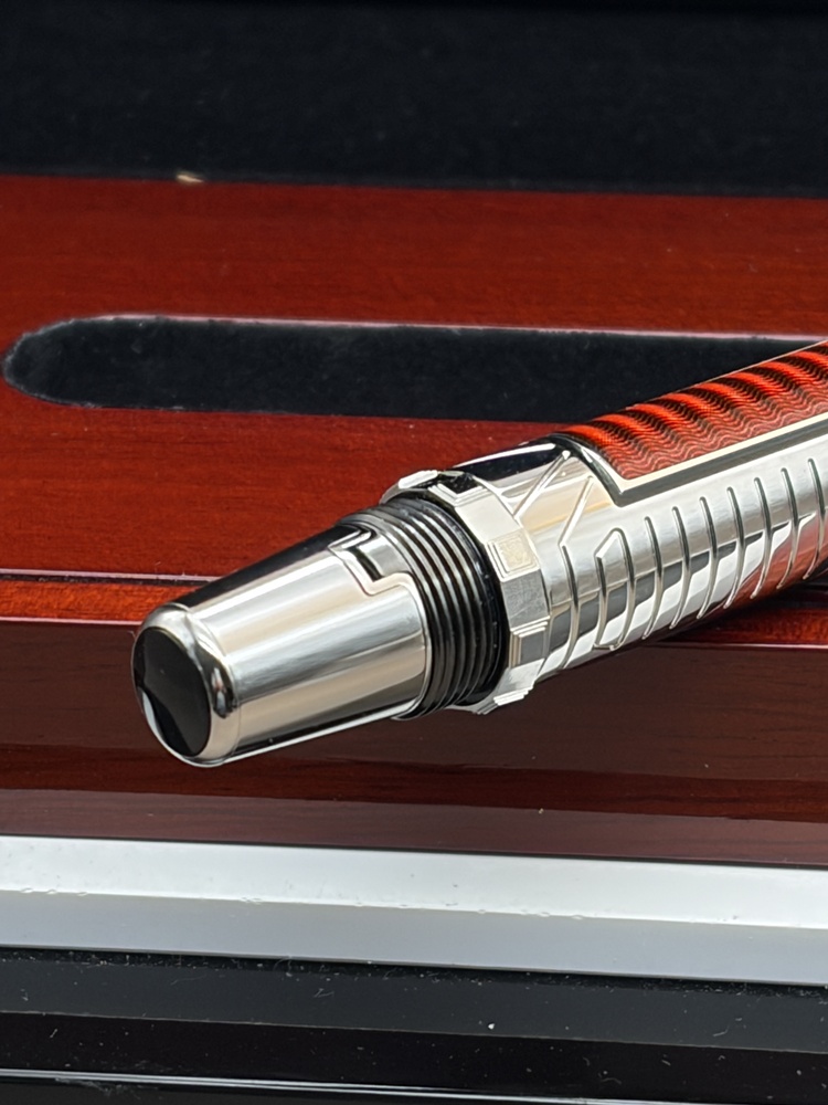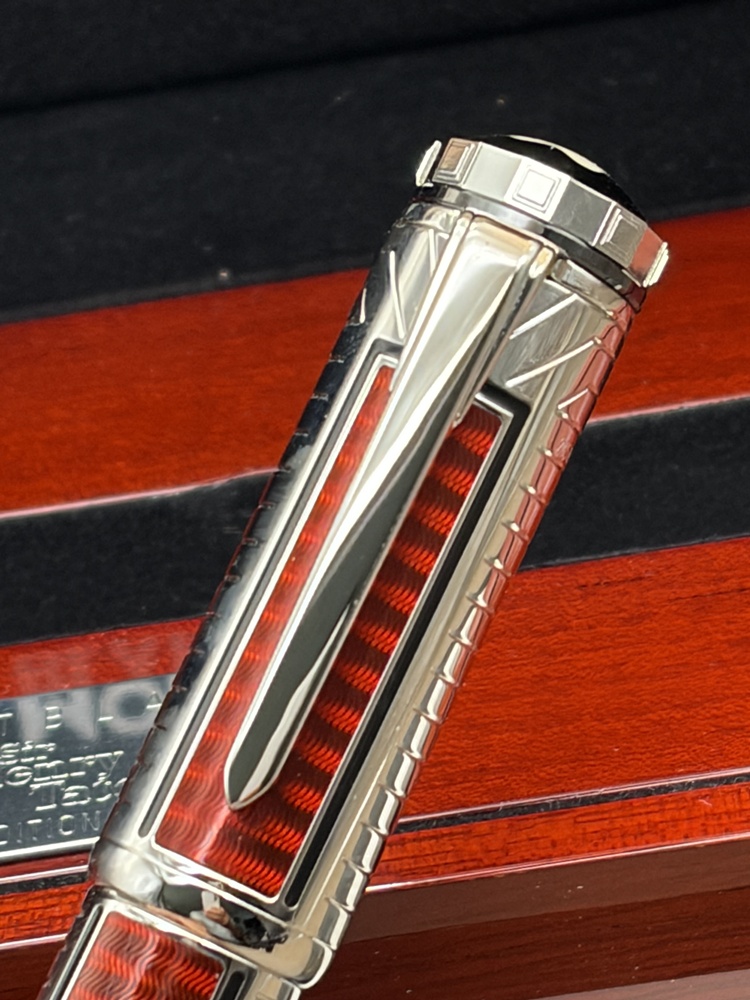 Der Korpus und die Kappe sind platiniert mit roten Lack Intarsien versehen