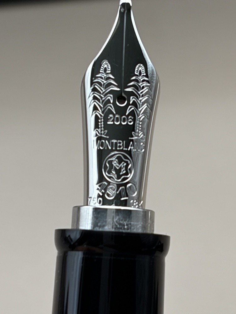 18-Karat-Goldfeder (teilweise rhodiniert) mit kunstvoller Gravur, die eigens für diese Edition entworfen wurde.
