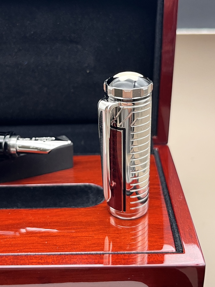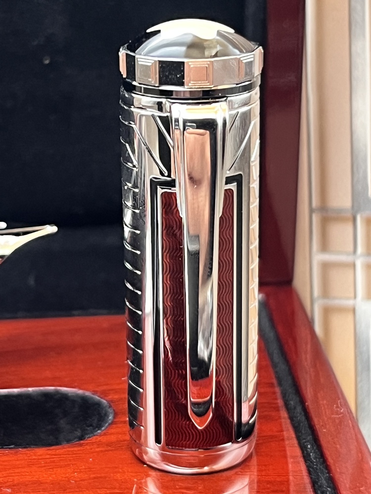 Der Korpus und die Kappe sind platiniert mit roten Lack Intarsien versehen