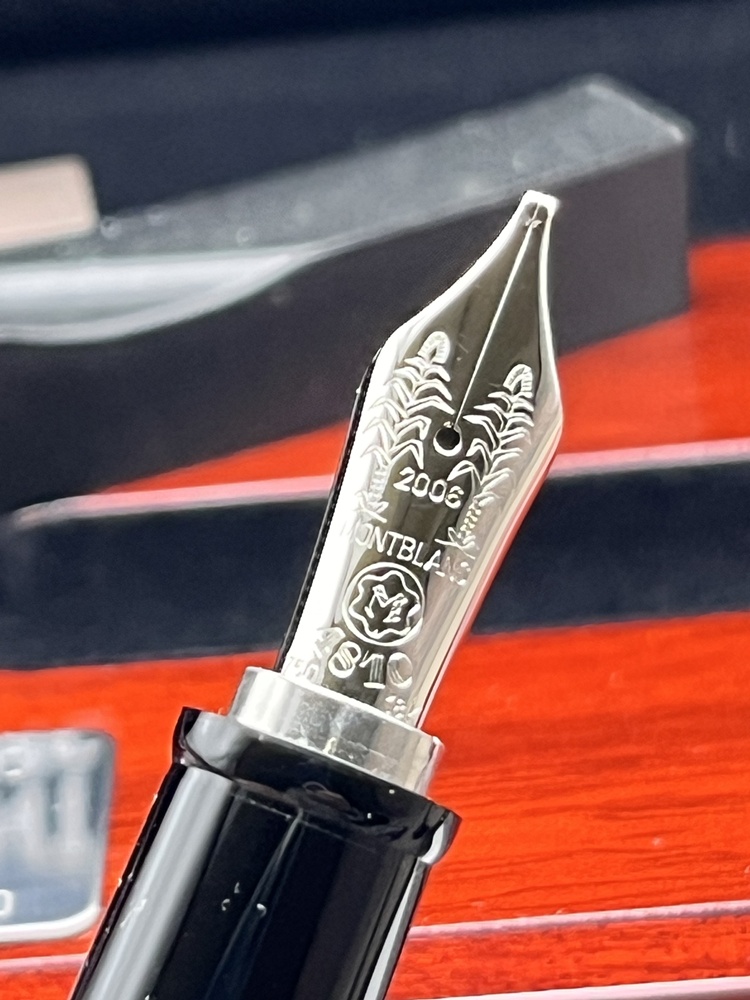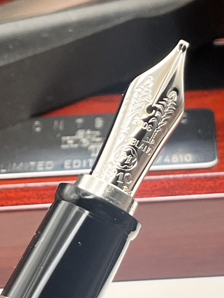 18-Karat-Goldfeder (teilweise rhodiniert) mit kunstvoller Gravur, die eigens für diese Edition entworfen wurde. Federstärke M