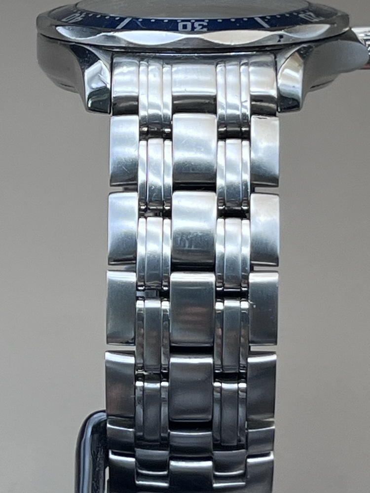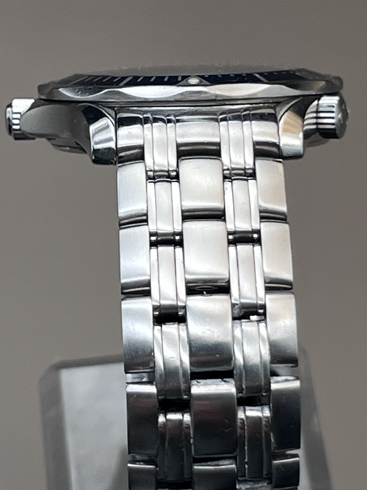 Das tiefblaue Zifferblatt mit dem wellenförmigen Muster erinnert an die Tiefe des Ozeans und spielt mit dem Licht bei jeder Bewegung des Handgelenks. Die drehbare Lünette, das kratzfeste Saphirglas und das robuste Edelstahlgehäuse unterstreichen den professionellen Anspruch dieses Zeitmessers. Angetrieben wird die Uhr vom zuverlässigen Omega Kaliber 1120 – ein Automatikwerk mit Chronometer-Zertifizierung, das höchste Genauigkeit garantiert.
